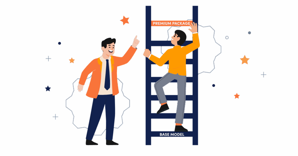 • Upselling: Encouraging a customer to purchase a more advanced or premium version of a product they are already considering (e.g., a higher trim level on a car).