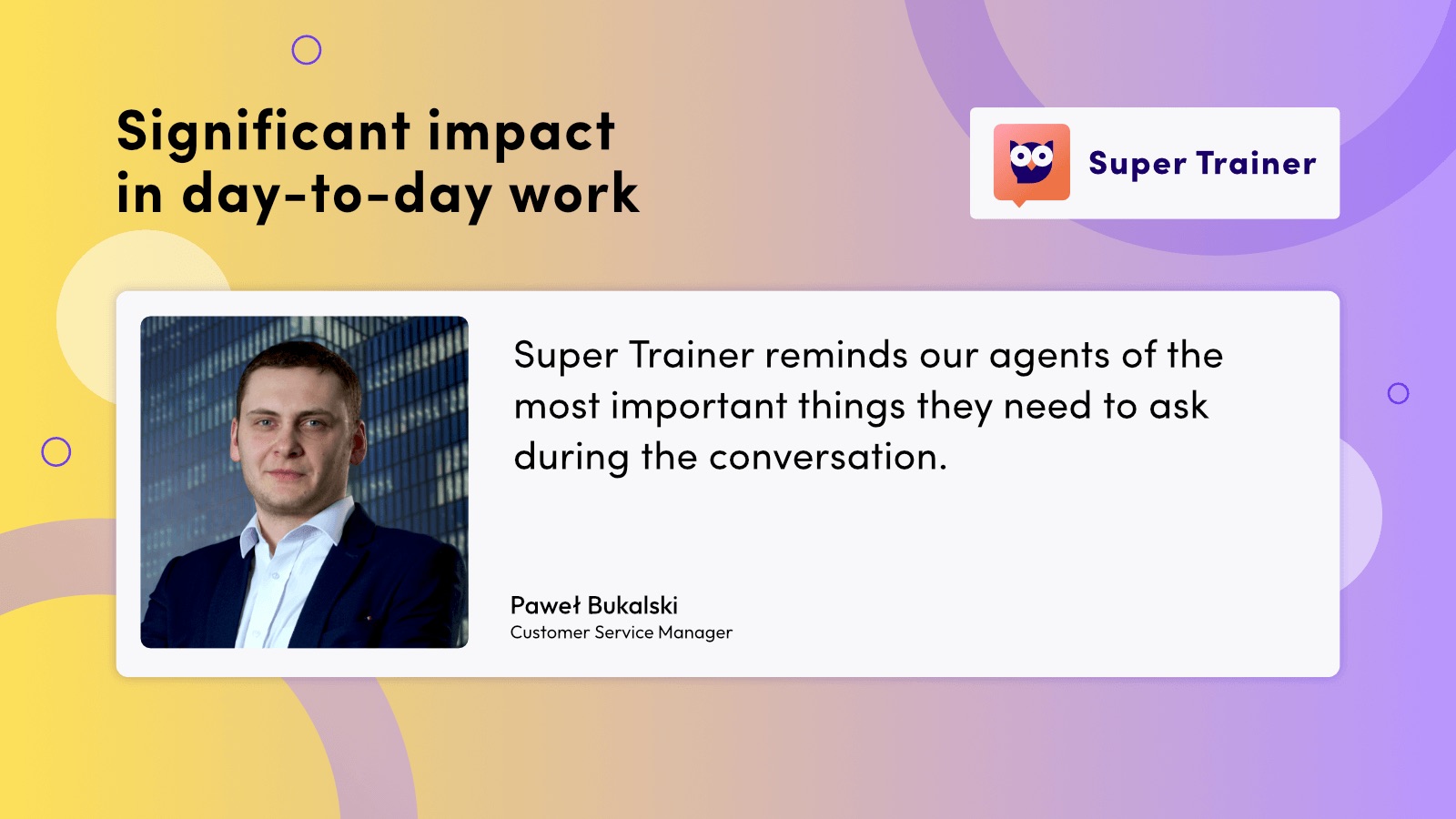Thanks to the Super Trainer you won’t miss a single business opportunity and increase your customer satisfaction. - Higher chat quality